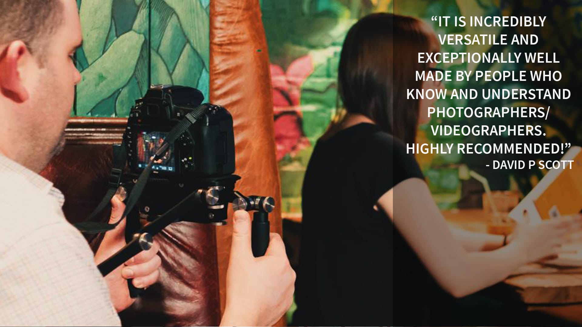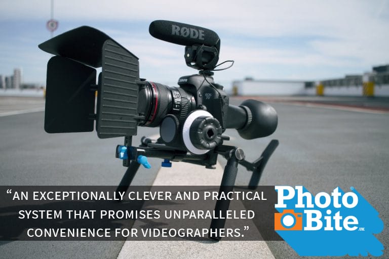 These ‘photographic’ cameras are not ergonomically designed for shooting video and traditional camera rigs are big, bulky and slow to set-up or switch a camera between.