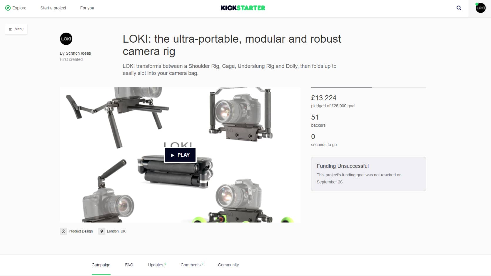To bring the LOKI one to market I first tried a Kickstarter campaign. This involved me writing, filming and editing the campaign video as well as producing all the PR and marketing collateral.